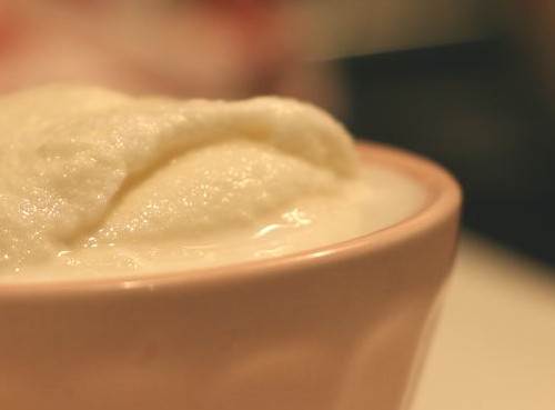 5. Place all incredients into ice cream maker. Churn for 25 minutes. Transfer to freezer until ready to serve.