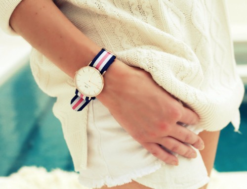 Chaps Cable-Knit Sweater in Holiday Cream, Michael Kors boots, Forever 21 shorts, gifted Daniel Wellington watch.