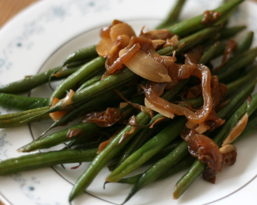 green beans with almonds and caramelized shallots