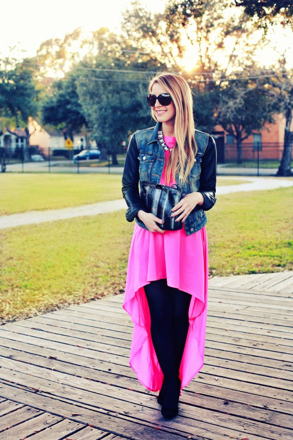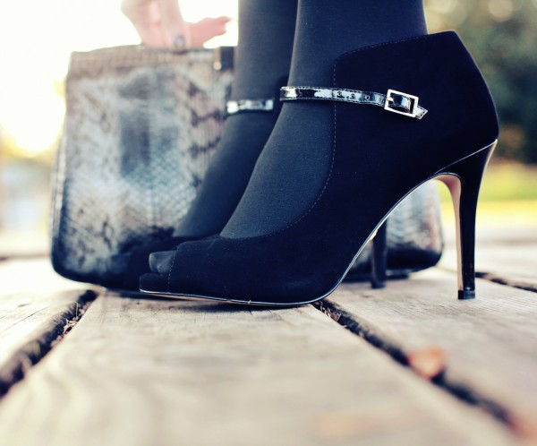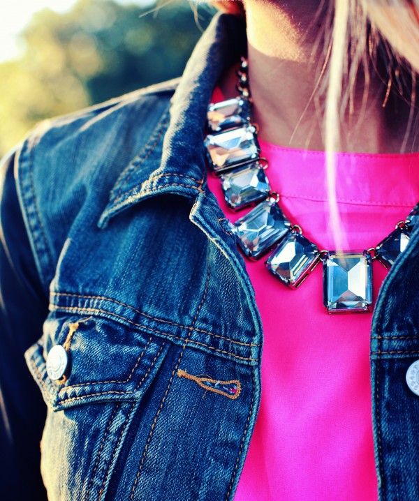 Sabo Skirt dress, Aritzia jacket (similar here and here), Ann Taylor Midnight Frost Statement Necklace, Ann Taylor booties, Jimmy Choo clutch.