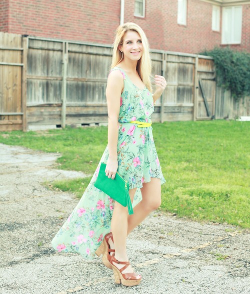 I ordered this dress during a particularly miserable period while studying for the bar exam, when all I could think about was how excited I'd be to get out of my pajamas and glasses and into a cute spring dress. These wedges from Nine West came at almost the same time, which is good because I've worn this pair just about to death at this point!