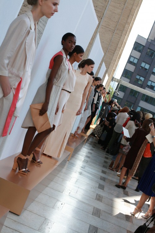 {the line of models at the rachel roy presentation -- i love the accessories too!}