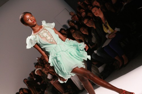 And the show: Unbelievable. Now that Kate Middleton has been spotted in Jenny Packham a half dozen times, she's become a household name in a way that she wasn't back in February. But there's a reason hers was one of my favorite shows last season -- these beautiful, impeccably detailed gowns are so wearable that you almost can't believe they're formalwear. They're the kind of dresses that the girl of the hour slips into to feel comfortable and incredibly elegant, and I'm dying to own one of my own someday!