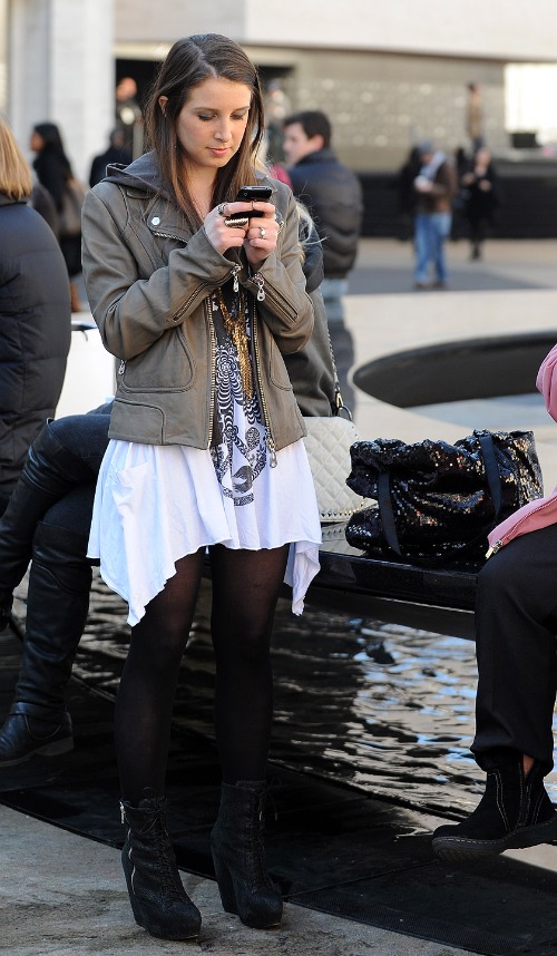 I love this shot that photographer Jorge Aguilera snapped of me at the tents yesterday! It was one of the few days where the temperature has climbed above thirty degrees, and I couldn't pass up the opportunity to spend a few minutes in the sunshine. After a freezing winter with an almost unbearable amount of snow, days like yesterday remind me why New York can be so fabulous when it wants to be.
