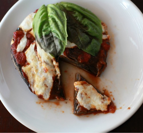 Preheat oven to 350. Spray rimmed baking sheet with non-stick spray. Clean mushroom caps with paper towel and remove stems. Spoon 1/4 cup tomato sauce into cap. Layer parmesan cheese and then with mozzarella cheese. Bake in oven for 20 minutes. Add two small basil leaves as a garnish. Serve warm.