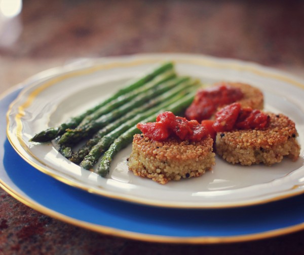 And, of course, never forget veggies on this side! I topped these with some warm marinara sauce (yum) and roasted asparagus is a delicious side and contains tons of antioxidants!
