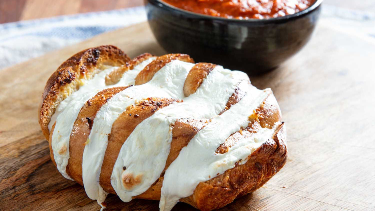 Hasselbacked Melted-Mozzarella and Garlic-Butter Bagels Recipe