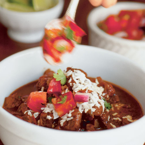 Heat a small, heavy skillet over medium-high heat. Add the cumin and coriander and toast, giving the pan an occasional shake, until the seeds are fragrant, about 5 minutes. Grind the seeds in a spice grinder or crush them in a mortar and pestle. In the same hot pan, toast the fresh oregano, if using . Remove the leaves after they’ve begun to dry out but before they lose all of their green color, about 3 minutes. Set aside. In a large, heavy-based skillet, Dutch oven, or stockpot, heat the oil until very hot. Brown the meat in the oil in batches , being careful not to crowd the pan or the meat will stew in its own juices and not brown. Transfer the browned meat from the pan to a plate lined with paper towels. Don’t clean the skillet after browning the meat. To the same skillet, add the onion, garlic, jalapeños, masa harina, pasilla powder, the toasted ground cumin and coriander, and toasted oregano. Stir over medium-high heat until the onion begins to soften, 5 to 8 minutes. Return the meat to the skillet; add the tomatoes, whole dried chiles, beer, chocolate, and water or stock. Simmer until the meat is fork-tender, about 1-1/2 hours. Remove the whole chiles before serving.