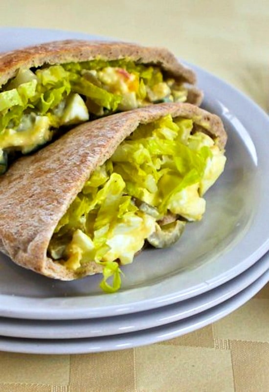 Low-Carb Egg Salad in Pita with Green Olives, Green Onions, and Dijon