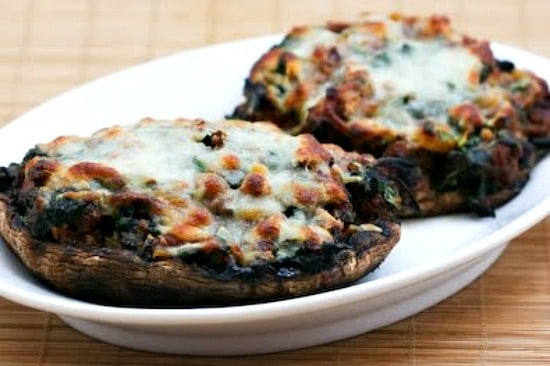 Grilled Portobello Mushrooms Stuffed with Sausage, Spinach, and Cheese