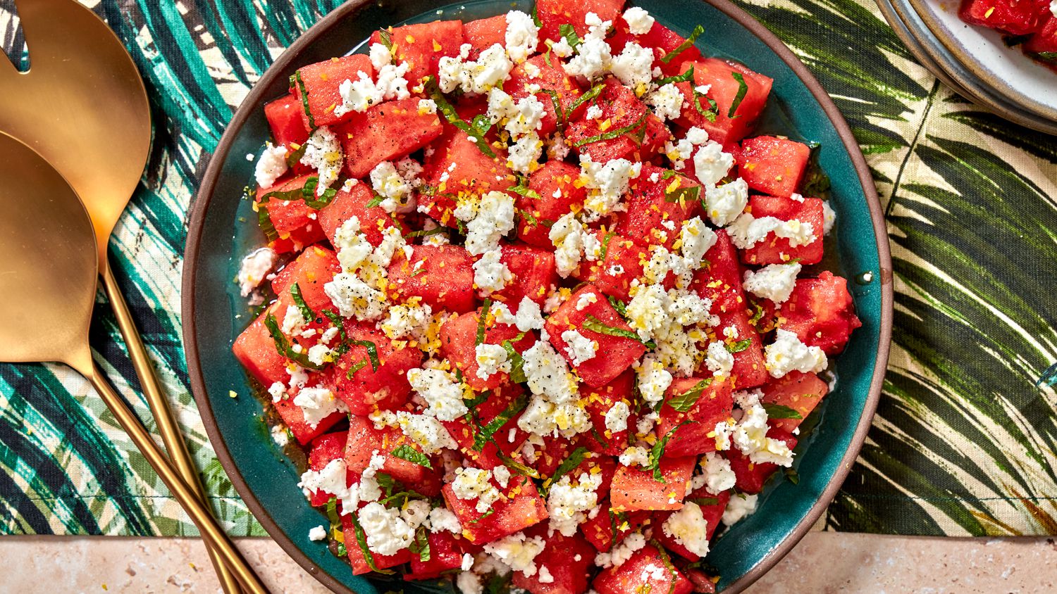 Place watermelon chunks in a large bowl. Finely chop lemon zest. Add lemon juice and half of zest to bowl with watermelon. Add oil, mint, and arugula and toss until watermelon is evenly dressed. Season lightly to taste with salt and pepper. Transfer salad to a wide, shallow bowl or a large plate and spread out evenly. Crumble feta over the top. Sprinkle with remaining lemon zest. Drizzle with more olive oil and a few grinds of black pepper. Serve immediately.