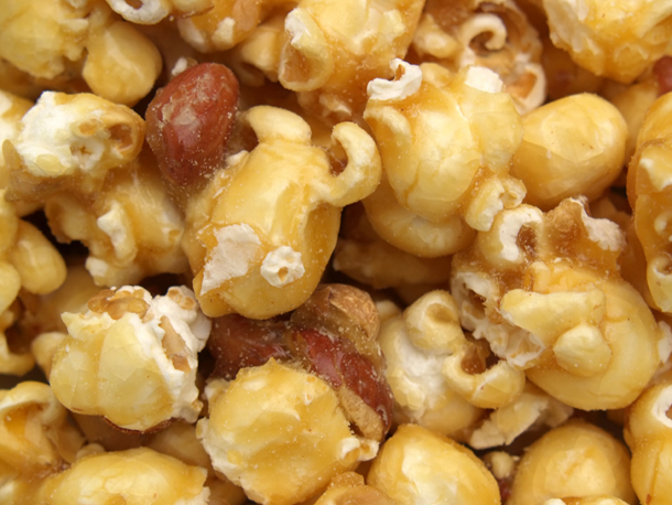 Prepare popcorn using your preferred popping method. Do not add salt. Place in a large mixing bowl, removing any unpopped kernels in the process. Combine the honey and sugar in a heavy saucepan over medium heat. Bring to a boil and continue cooking for 3 minutes and then remove from heat. Immediately add the peanut butter and peanuts. Stir until the peanut butter is incorporated in the mixture. Quickly pour the peanut butter topping over the popcorn and use two large spoons to gently toss the popcorn so that the popcorn is well coated. Allow to cool and serve with your favorite film!.