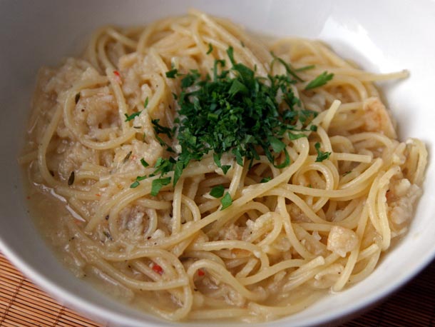Spaghetti with Thyme-Chile Celeriac Puree Recipe