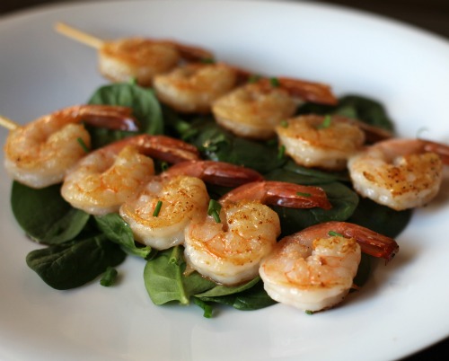 These are literally a five-minute dish -- I bought the shrimp raw and already skewered, and just marinated them for about twenty minutes before cooking. These can be sauteed for barely three minutes, total, flipping once, so you can't really get much more low-maintenance than that. For a quick weeknight dinner over some rice or a salad, or just on their own as a low-carb snack.